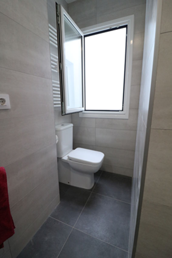 1 baño y 1 aseo. La planta superior cuenta con un baño completo con ducha equipado con toallas y artículos de aseo. En la planta baja se dispone de un aseo simple y de un cuarto de lavandería con lavadora y espacio para tender.